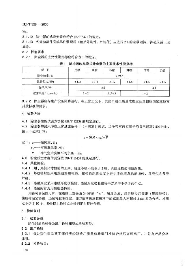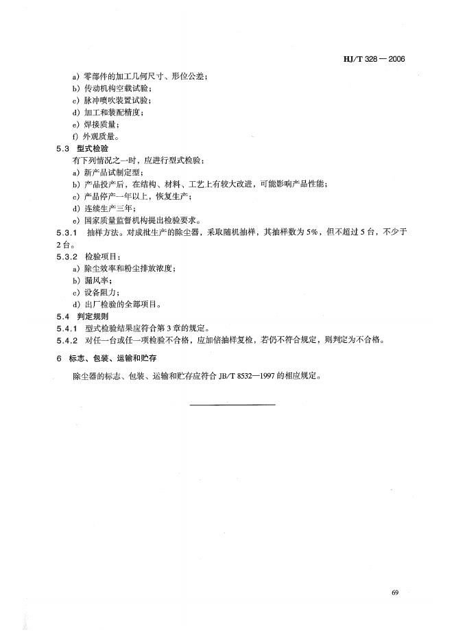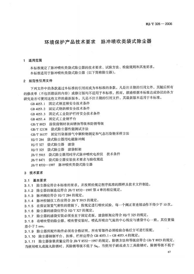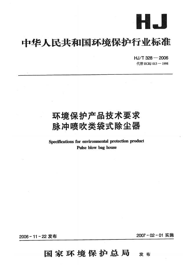 HJ/T 328-2006 环境保护产品技术要求 脉冲喷吹类袋式除尘器