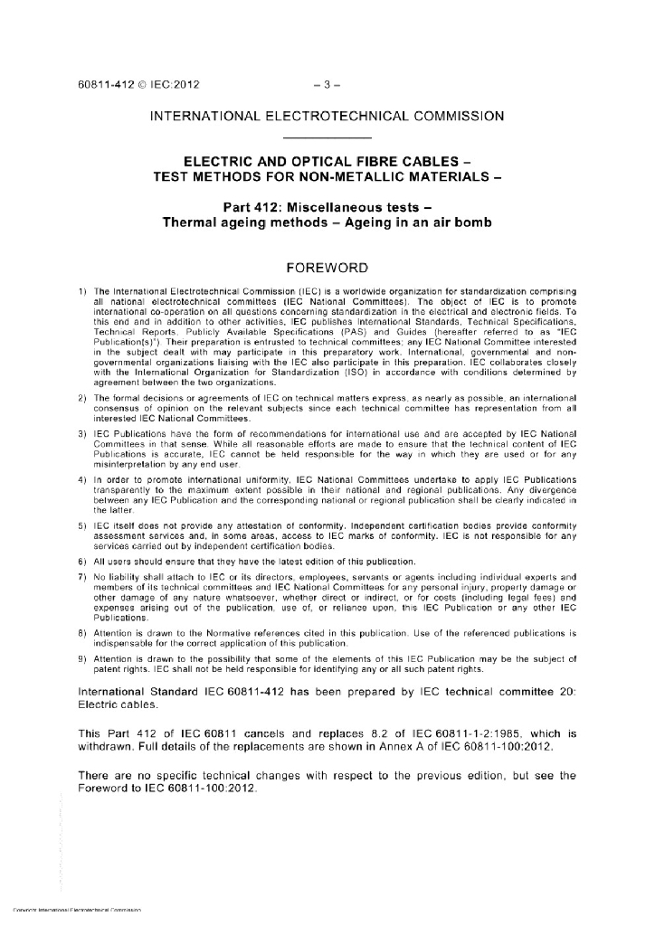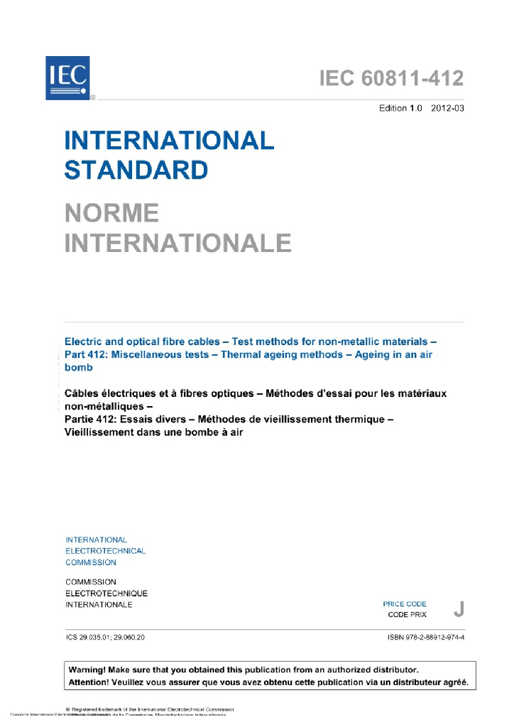 IEC 60811-412:2012 电缆和光缆 非金属材料的试验方法 第412部分:杂项试验 热老化法 空气弹老化