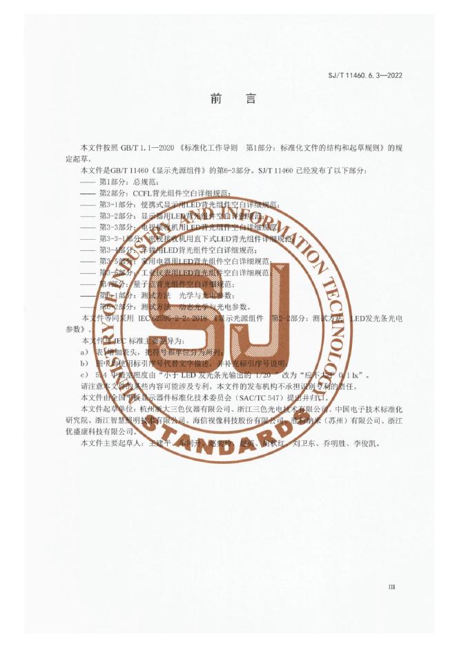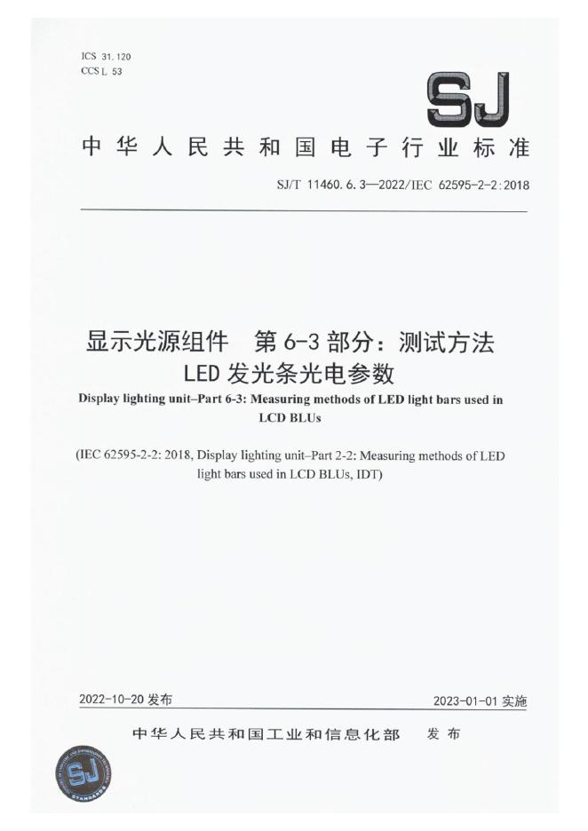 SJ/T 11460.6.3-2022/IEC62595-2-2:2018 显示光源组件 第6-3部分:测试方法 LED发光条光电参数