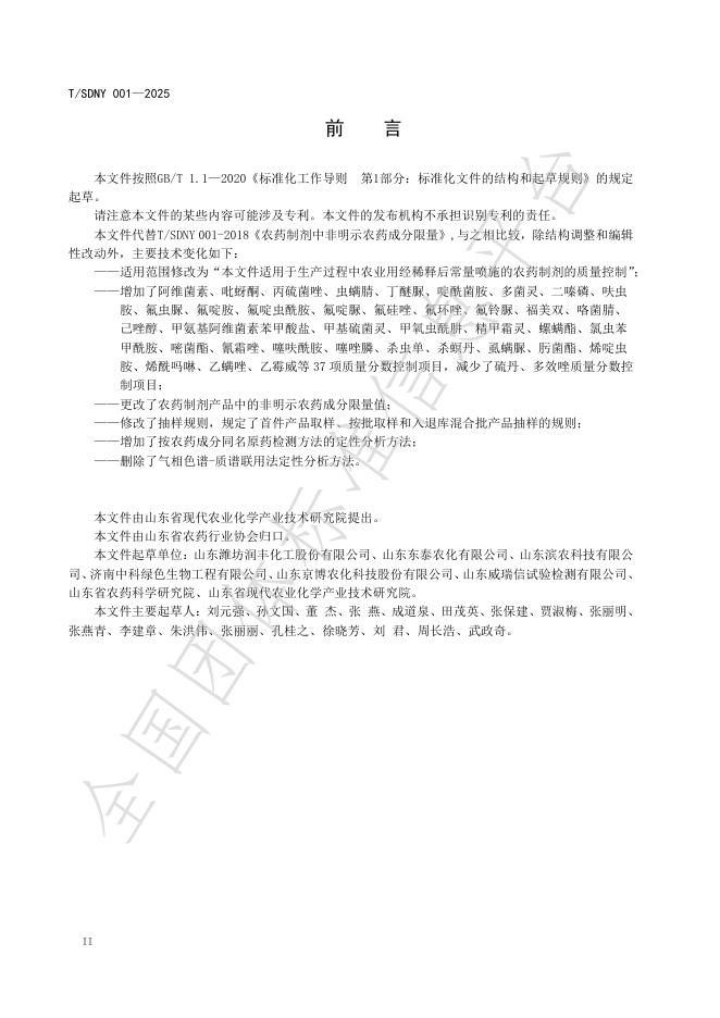 T/SDNY 001-2025 农药制剂中非明示农药成分限量